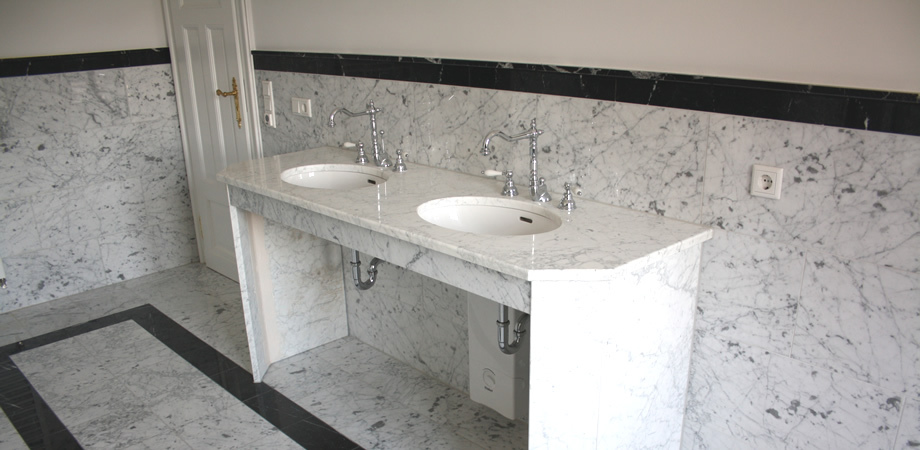 Alles aus einem Guss! Wandverkleidungen und Bodengestaltung aus demselben Naturstein wirken besonders harmonisch. In unserer Ausstellung können Sie aus zahlreichen Natursteinen und Farbschattierungen wählen. Auf Wunsch übernehmen wir auch das Aufmaß und die Montage von Wandelementen.